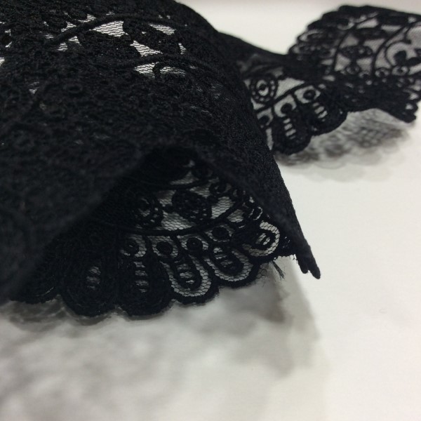 Entredós de guipur en tul bordado de color negra de 7 cm