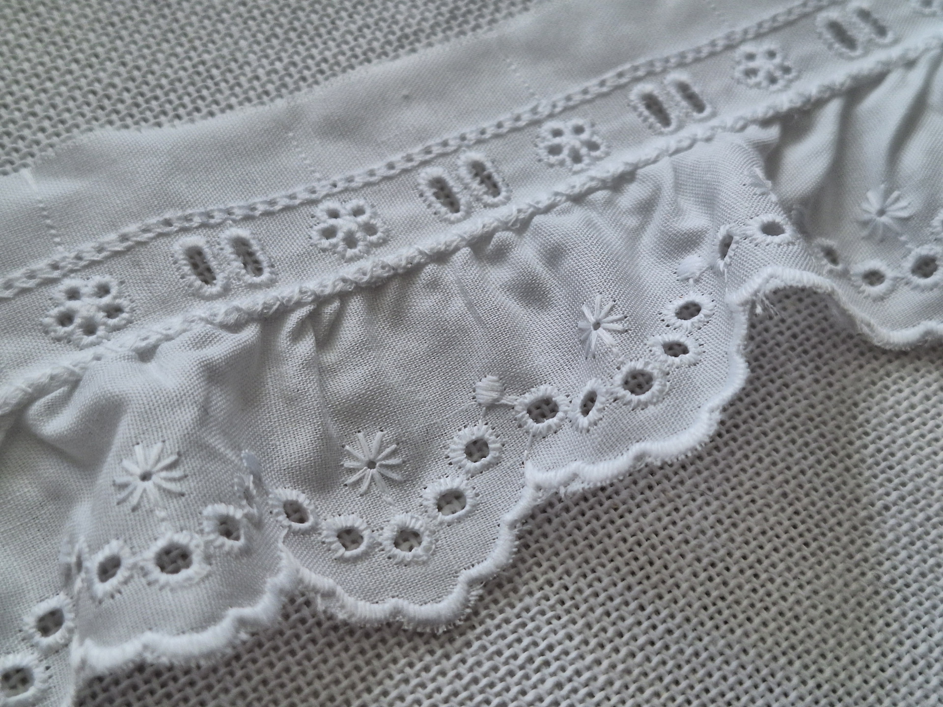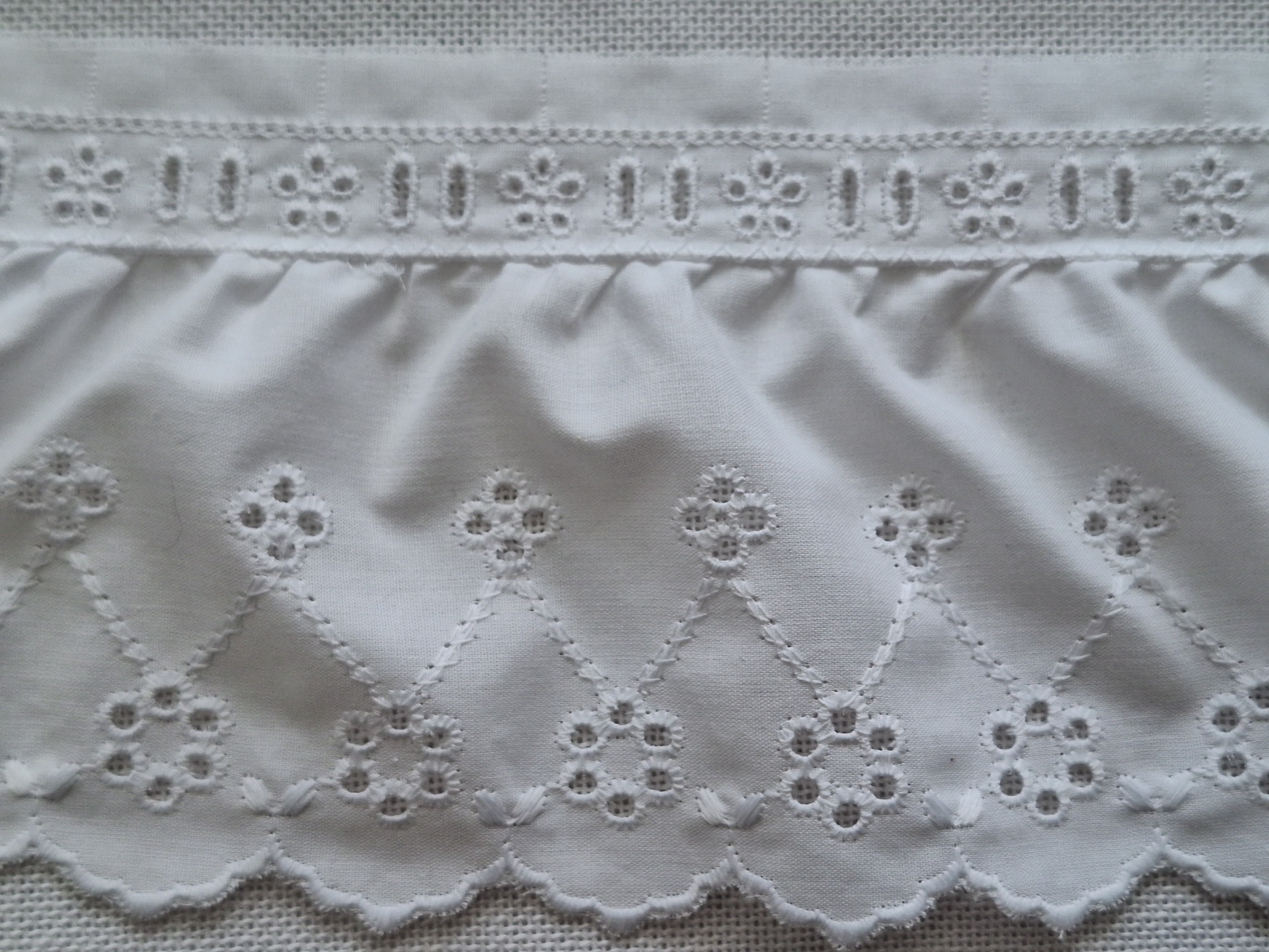 Tira bordada fruncida  con pasacinta de 6 mm.