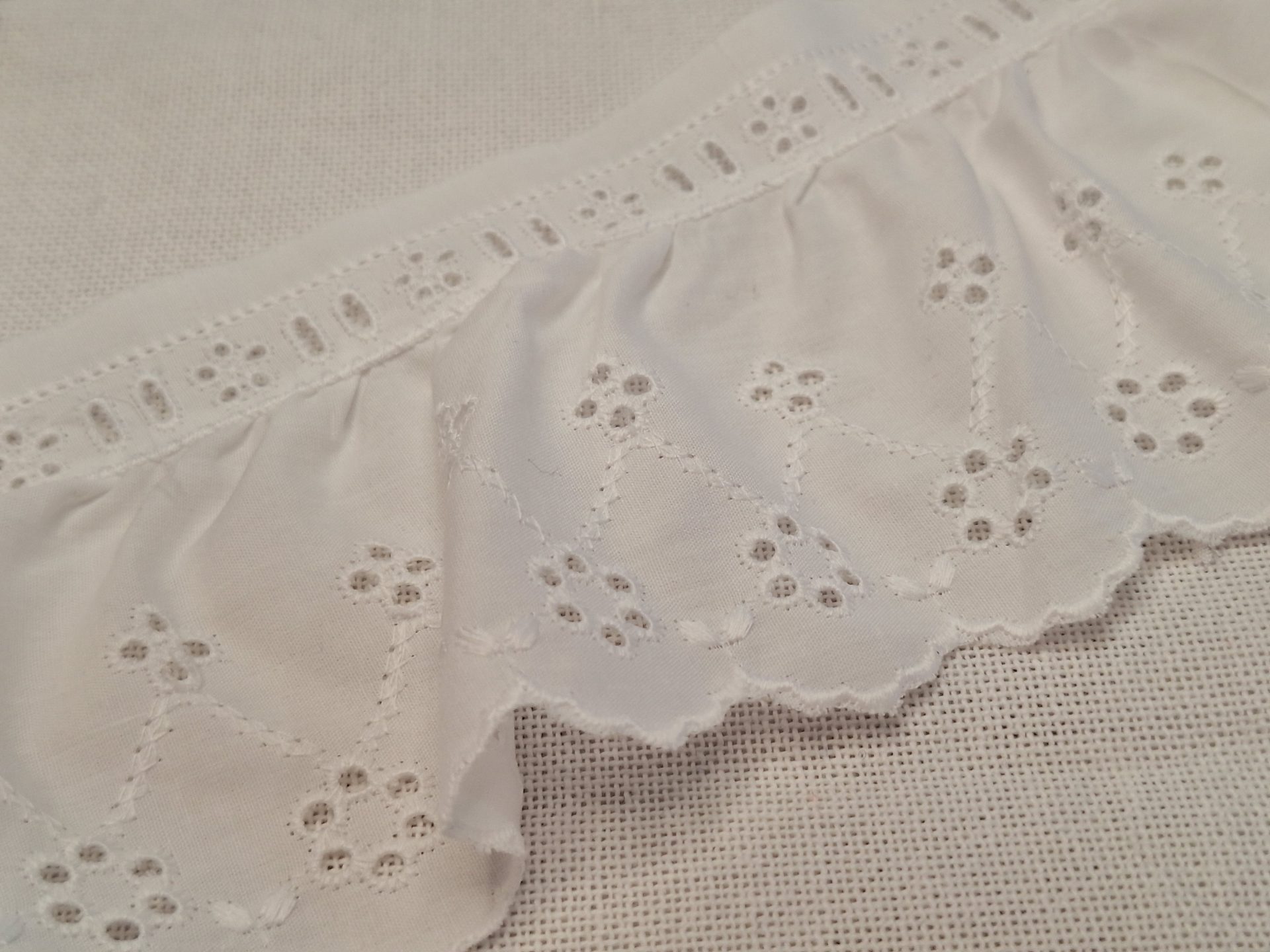 Tira bordada fruncida  con pasacinta de 6 mm.
