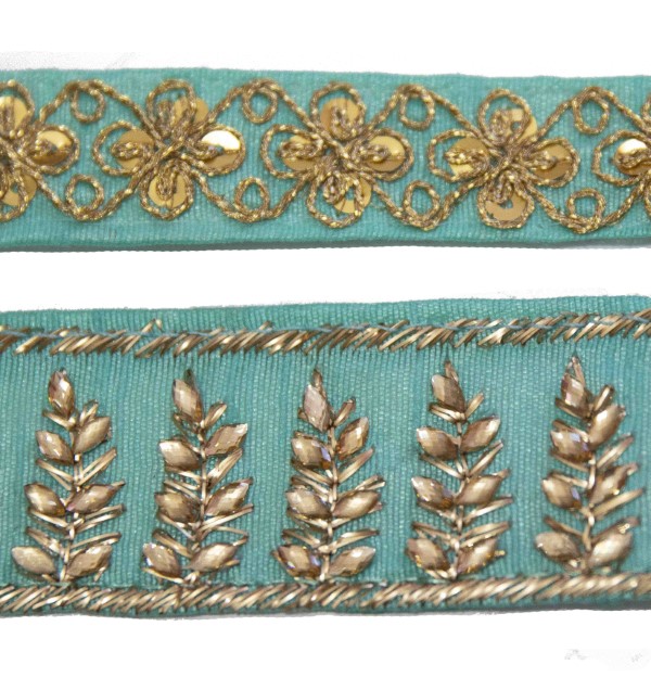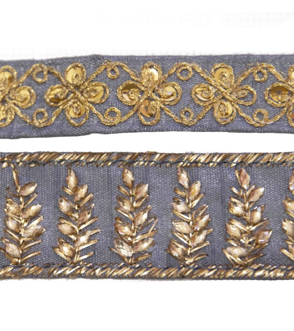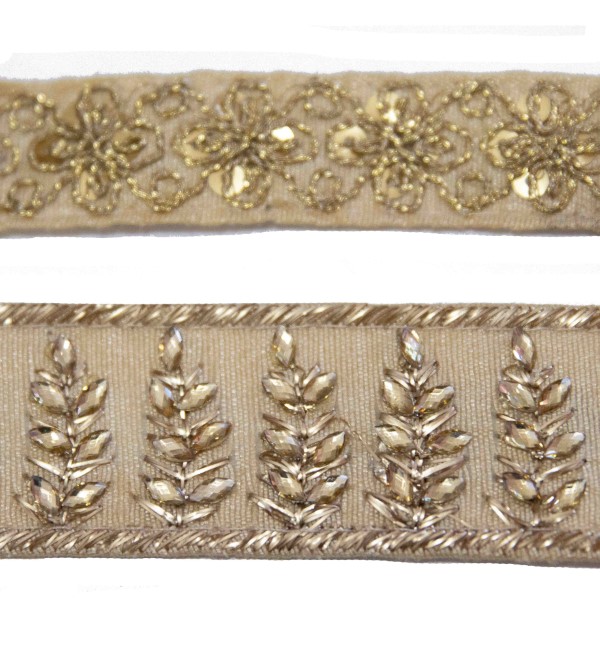 Hay otro productos en el que puedes ver pasamanerías compañeras pero más anchas para poder conjuntarlas «pasamanería con pedrería»