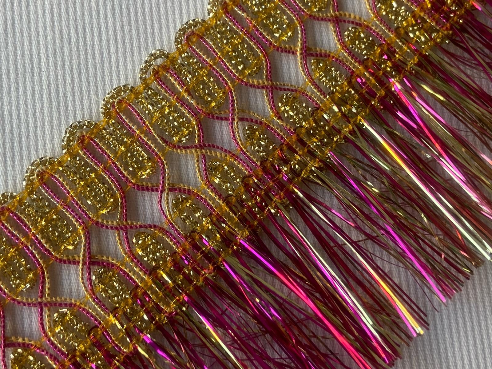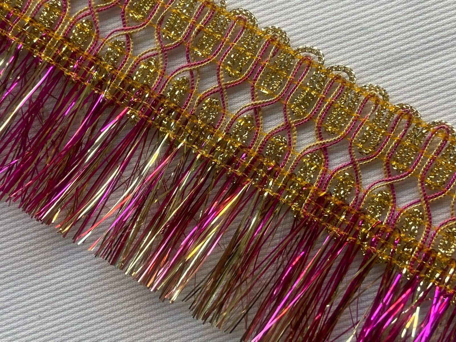 Pasamanería fantasía fleco rosa y oro