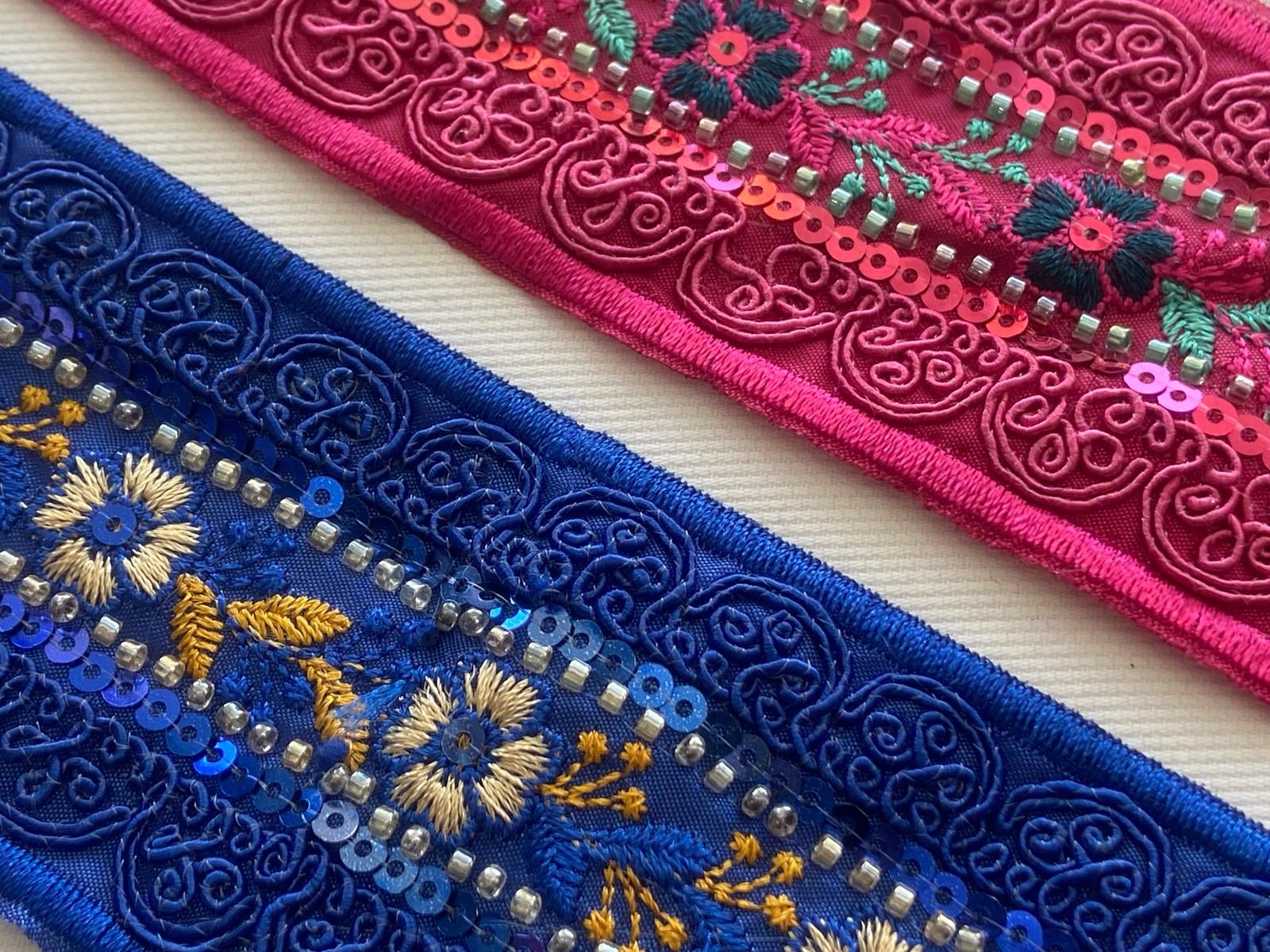 Pasamanería fantasía azul y rosa