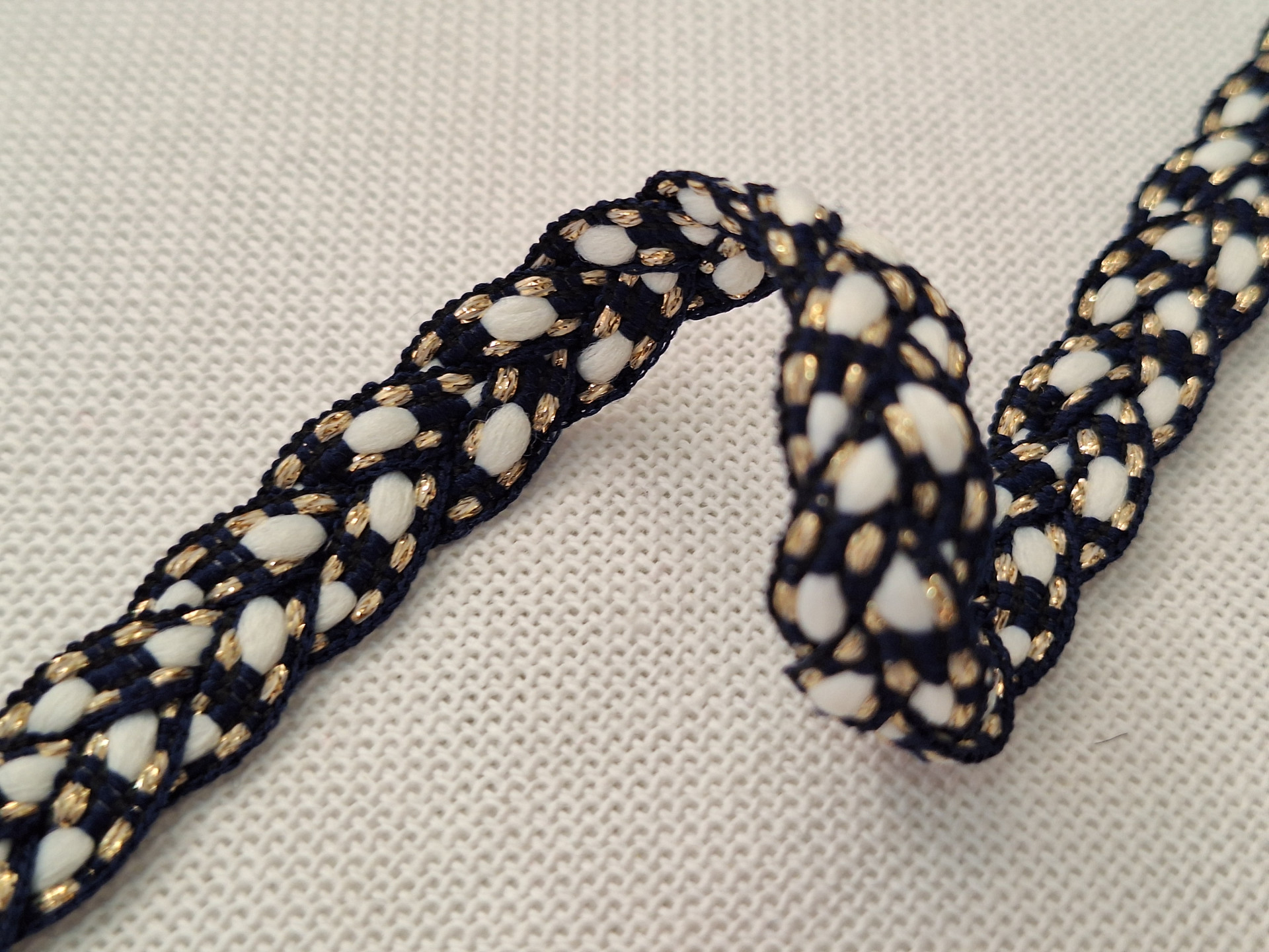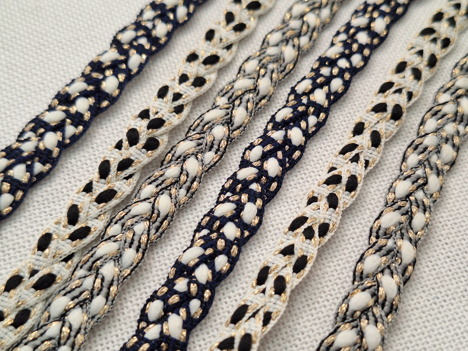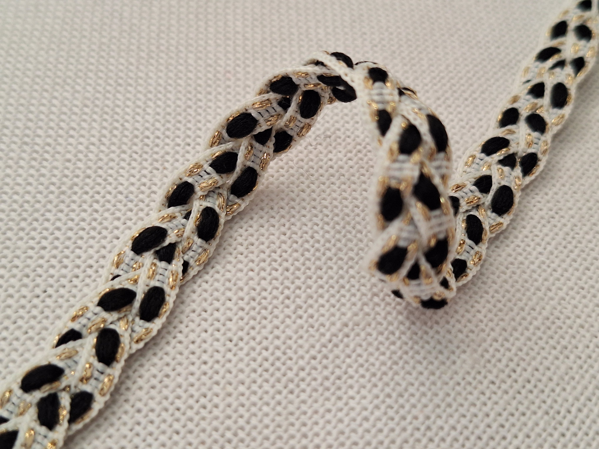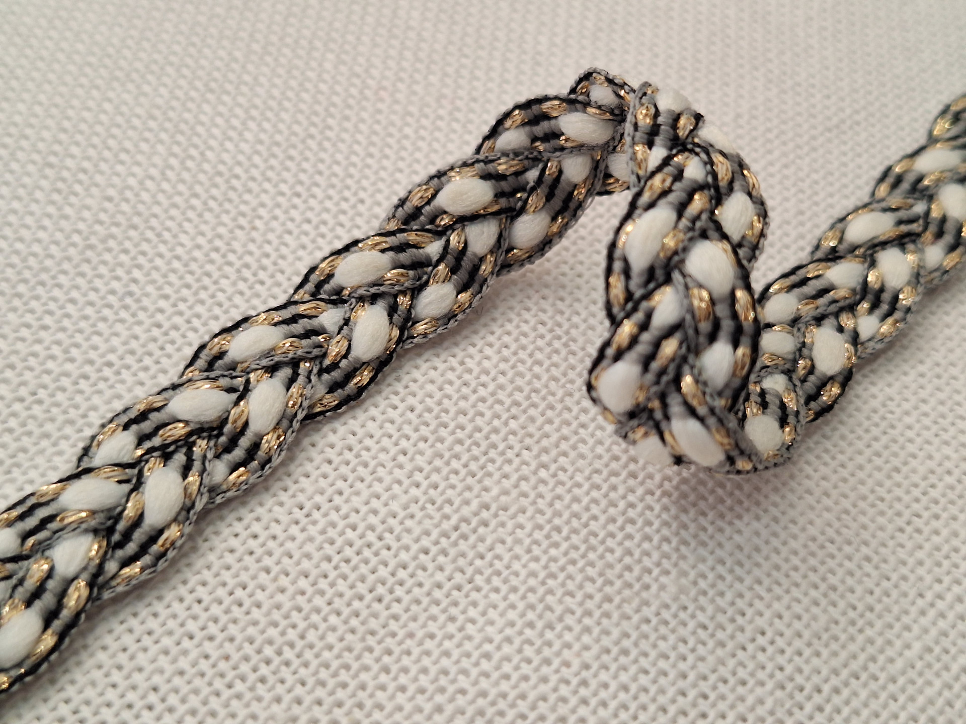 Pasamanería de fantasía estilo trenzada con hebras de hilo dorado