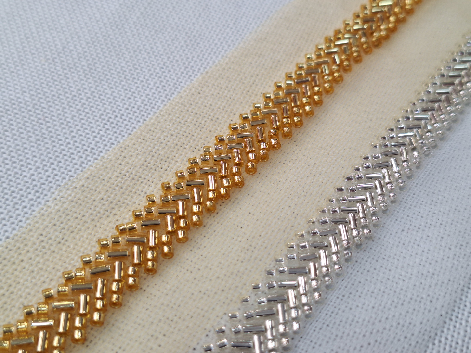 Pedrería en tul bordada con cuentas y abalorios