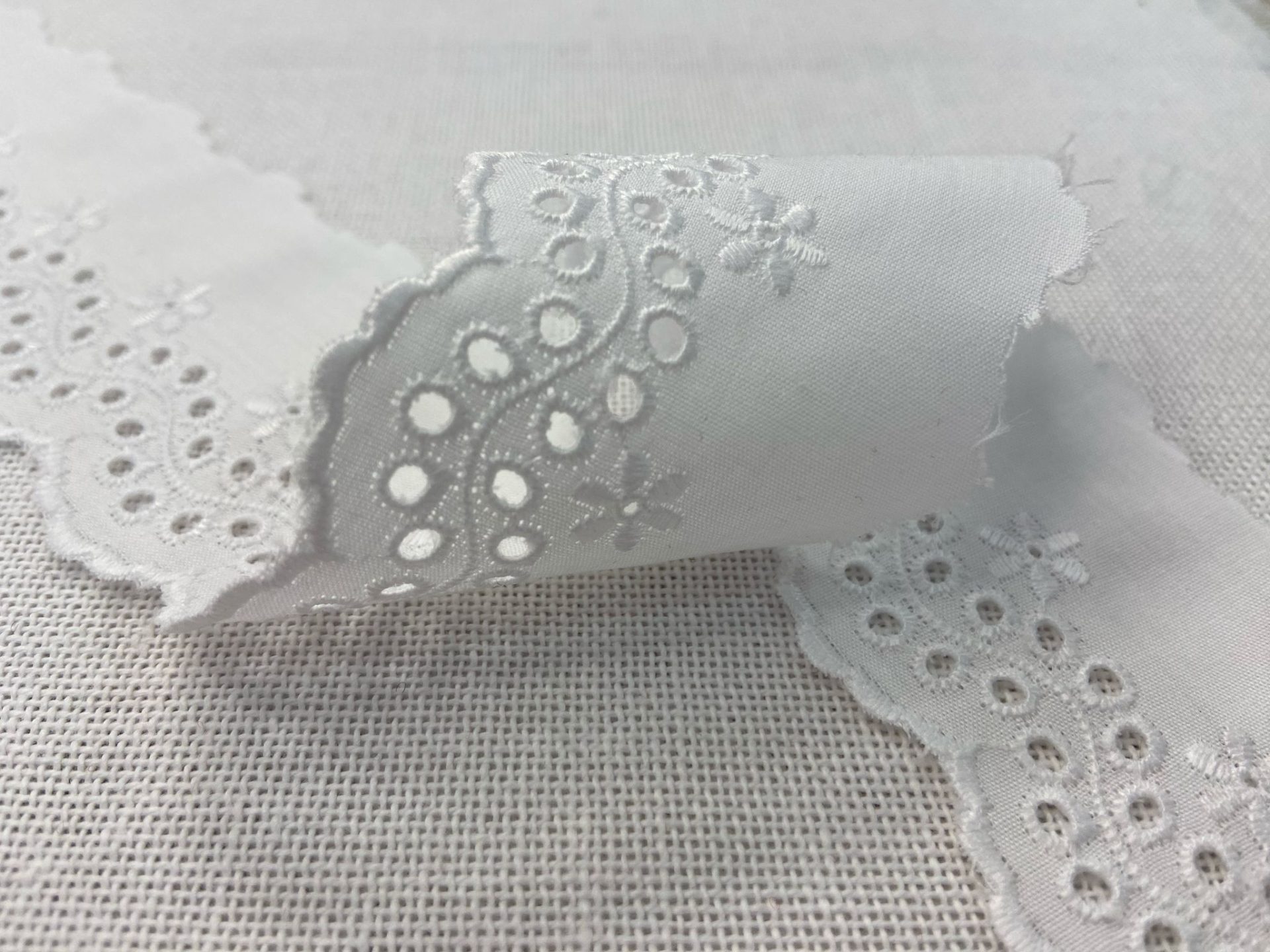 Tira bordada de punta blanco