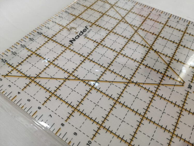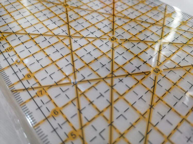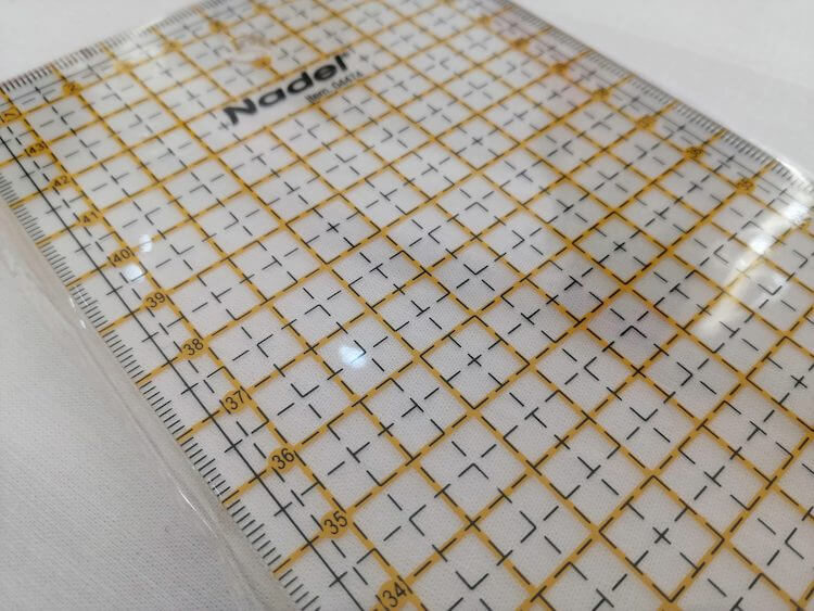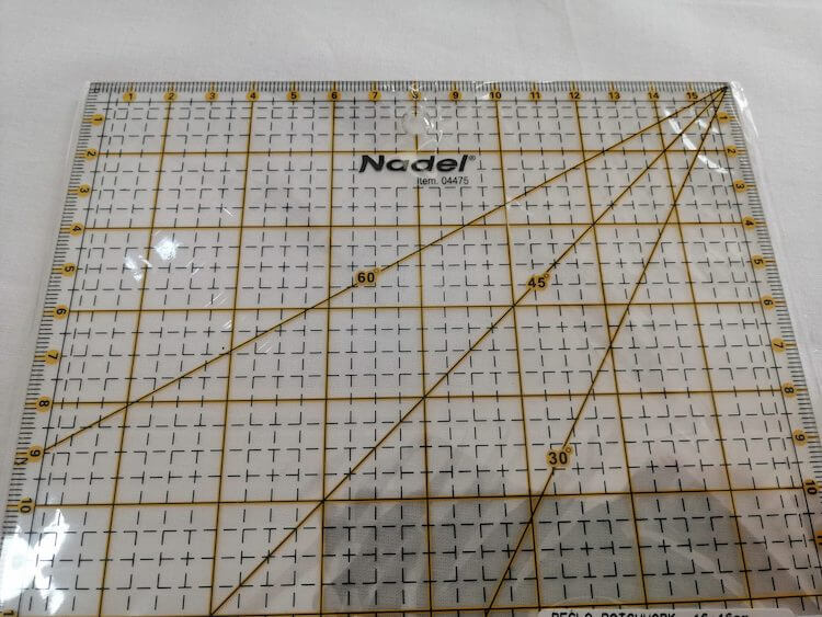 La regla para patchwork es de plástico transparente, lo que permite la visualización de las telas o materiales que estemos manipulando consiguiendo marcarlos a la perfección.